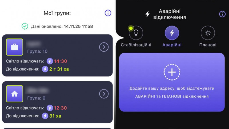 Колаж: зліва — вигляд застосунку до оновлення, справа – опісля. Суспільне Чернівці"Водночас групи відключень у користувачів не змінювалися, повідомили в обленерго. Оновлення стосується лише розширення можливостей відображення та підвищення точності даних", – повідомили в обленерго.
