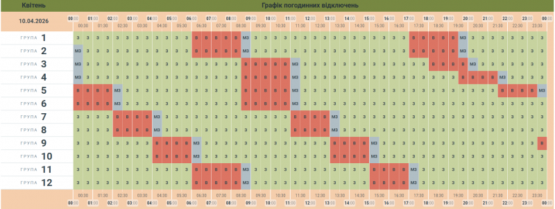 Графік погодинних відключень електрики на 10 квітня. АТ «Чернівціобленерго»