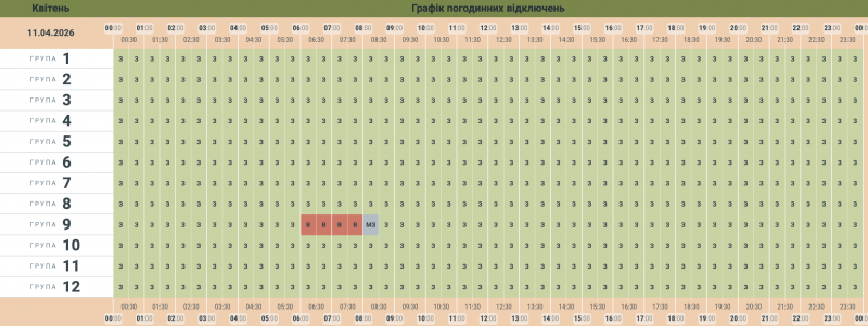 Режим роботи графіків може змінюватися протягом доби залежно від ситуації в енергосистемі України, повідомляли раніше Суспільному в обленерго.