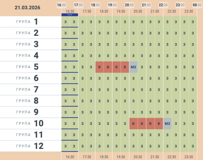 Режим роботи графіків може змінюватися протягом доби залежно від ситуації в енергосистемі України, повідомляли раніше Суспільному в обленерго.