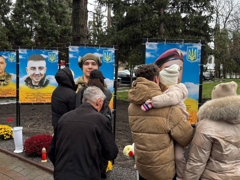 Люди біля портретів полеглих захисників. Суспільне Вінниця