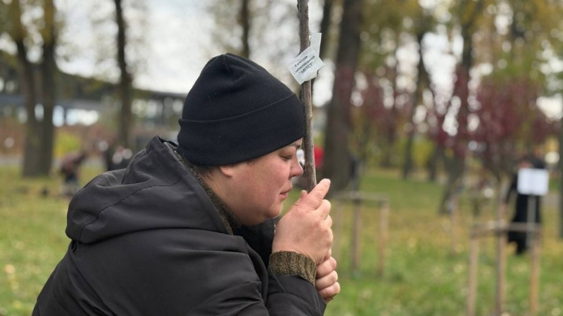 «Ми фотографувались тут після весілля»: в Києві висадили сакури на згадку про загиблих військових