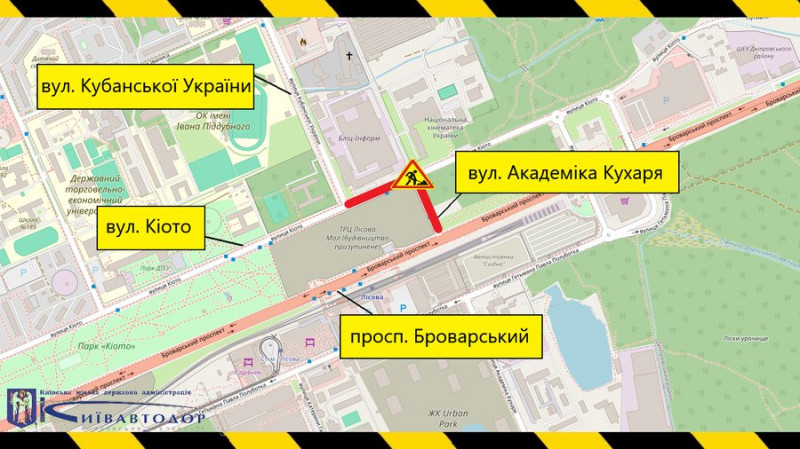 Також 29 листопада, з 9:00 до 18:00, частково обмежуватимуть рух вулицями Академіка Кухаря та Кіото в Деснянському районі столиці. Дорожники асфальтуватимуть проїжджу частину на ділянці від вул. Кіото до Броварського проспекту та від вул. Кубанської України до вул. Академіка Кухаря.