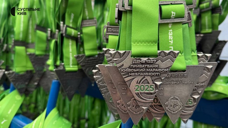 Медалі учасників «Марафону Незламності». Київ, 11 жовтня 2025 року. Суспільне Новини/Анна Железняк