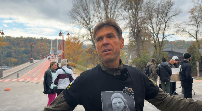 Учасник акції Андрій розповів, що долучився до забігу заради вшанування пам'яті свого сина "азовця" Кирила на позивний "Прайд", полеглого за Україну у 2022 році та на підтримку усіх загиблих і полонених воїнів.