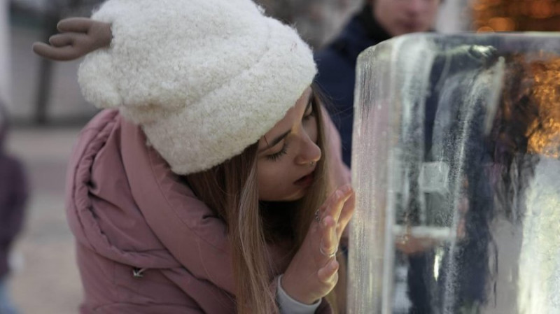 У Києві відкрилася інтерактивна інсталяція — серце, сховане у крижаній брилі. Її встановили на Софійській площі, біля головної ялинки країни.