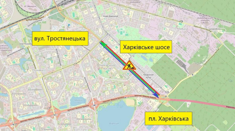 Також із 4 жовтня частково обмежуватимуть рух Харківським шосе у Дарницькому районі столиці. Це пов'язано з початком капремонту. На першому етапі обмеження діятиме на ділянці шосе від Харківської площі до вулиці Тростянецької на непарній стороні.