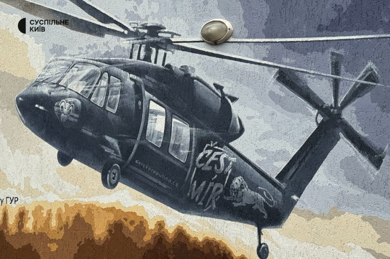 У Києві з’явився мурал з гелікоптером, який чехи подарували ГУР в межах ініціативи «Подарунок для Путіна»