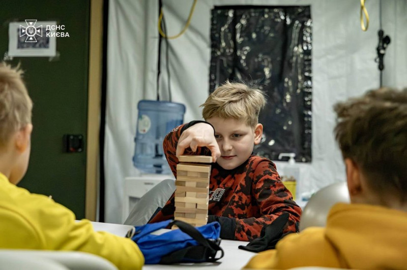 Діти бавляться в ігри зі «Скрині креативності» від ДСНС у «пунктах незламності», Київ. ДСНС України/Telegram