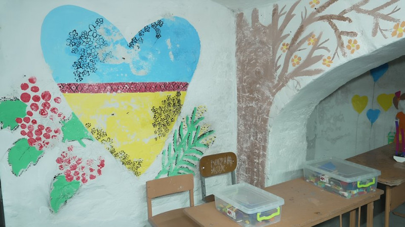 "Діти можуть чим займатись: почитати книжку, є конструктори. В укритті забезпечені питною водою, печивом, проведений інтернет. Якщо пройдемо в іншу кімнату, побачимо: коли приходить зимова пора, холодно, у нас є така пічка-буржуйка, якою ми опалюємо і кімната нагрівається абсолютно швиденько", — каже завідувачка.