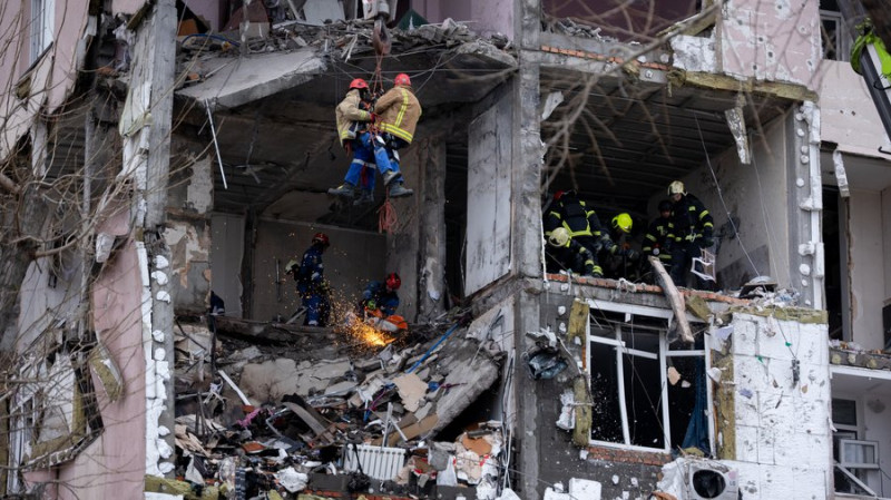 Рятувальники працюють у зруйнованому російським ударом будинку, Київ, Україна, 27 грудня 2025 року. Суспільне Новини/Олександр Магула