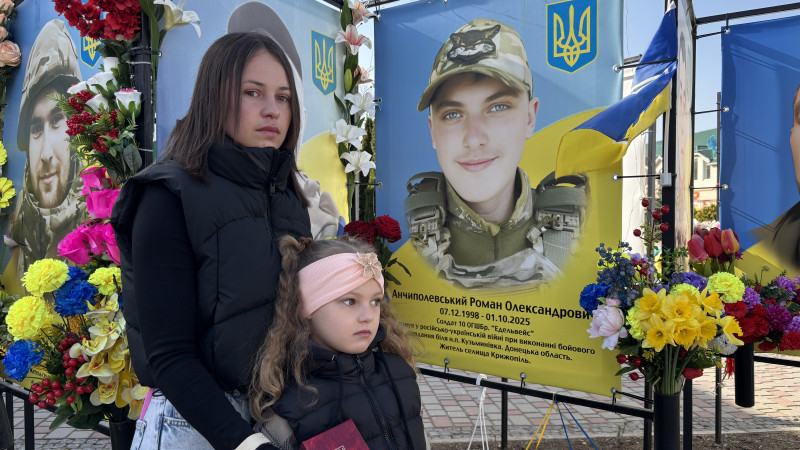 Дружині та доньці Романа Анчиполевського передають його посмертну нагороду. Суспільне Вінниця