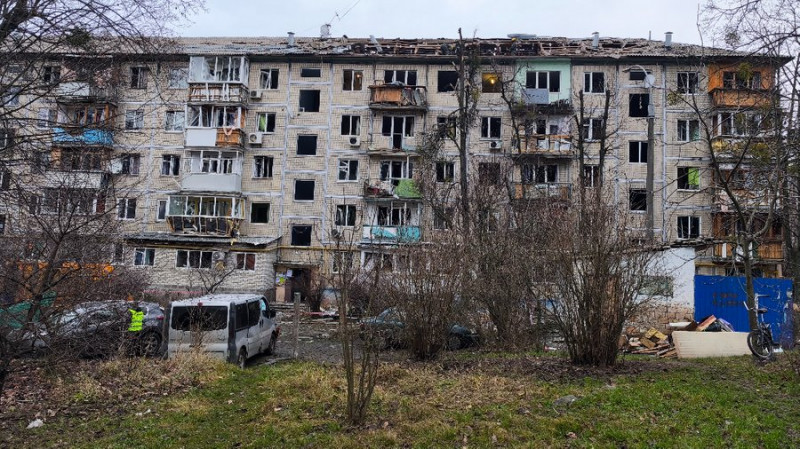 Пошкоджений від уламків будинок у Святошинському районі, 23 грудня 2025 р. Cуспільне/Дар’я Нематіан Золбін