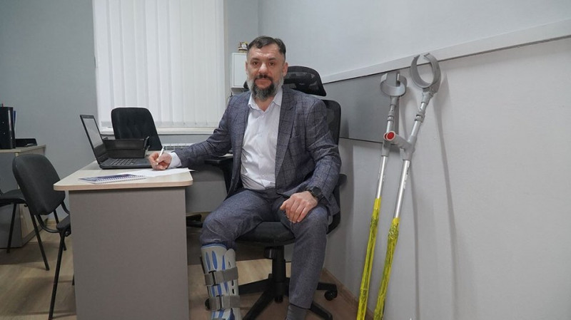 У кабінеті Віктора є ергономічне крісло з регульованим сидінням, спеціальні столи, тумби, стелажі та інші необхідні пристосування.