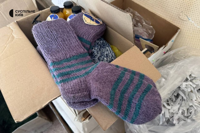 Шкарпетки для військових, які сплели волонтери центру «Чарівні ластівки». Суспільне Новини/Анна Самара"У нас тут мороз такий стояв в цій нашій волонтерській кімнатці, що в нас замерзала вода. І у нас лід стояв, ожеледиця", — каже Юлія Вишницька.