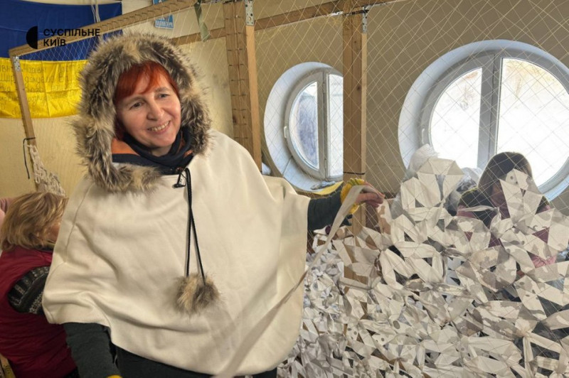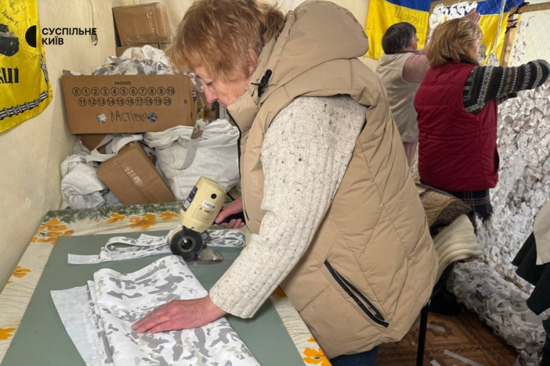 Попри мороз, вимкнення світла і опалення волонтери столичного Центру "Чарівні ластівки", що розташований на Троєщині, продовжують плести маскувальні сітки, в'язати шкарпетки та нашоломники. За минулий рік виготовили 23 тисячі квадратних метрів сіток. Кажуть, мають постійний запит, тому не припиняють роботу.