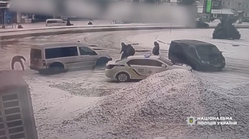 Поліцейські намагаються затримати водія. Скрішот відео. Нацполіція області
