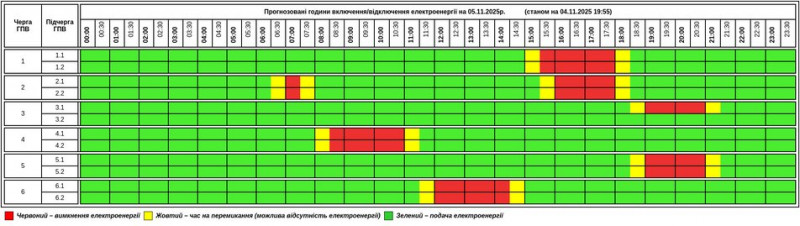 Графік вимкнень електроенергії на 5 листопада. АТ «Трнопільобленерго»