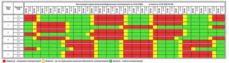За інформацією: Суспільне Тернопіль. Графік відключень електроенергїі на Тернопільщині 12 січня 2026 року. Скрин
