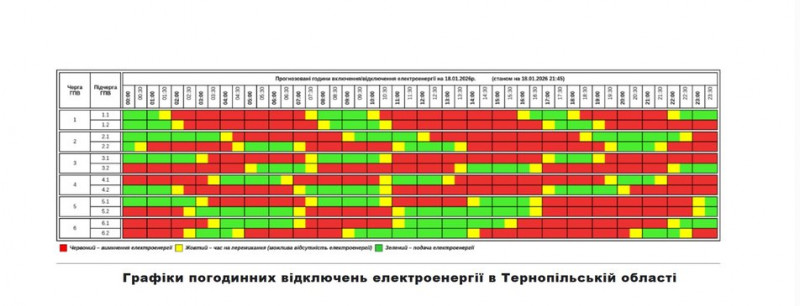 За інформацією: Суспільне Тернопіль. Графік погодинних відключень електроенергії на Тернопільщині 17 січня 2026 року.