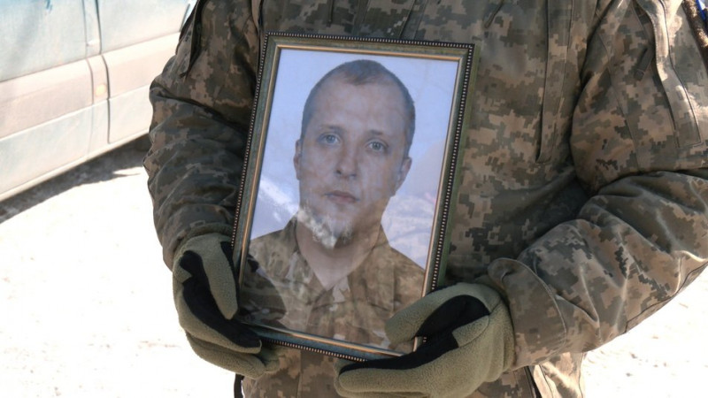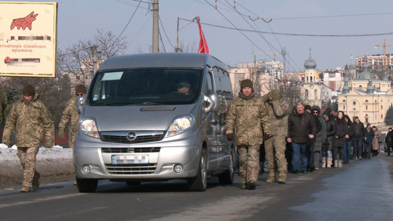 Труну з тілом бійця накрили жовто-блакитним прапором. Суспільне Тернопіль