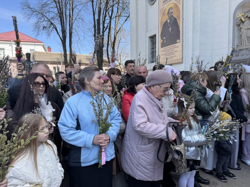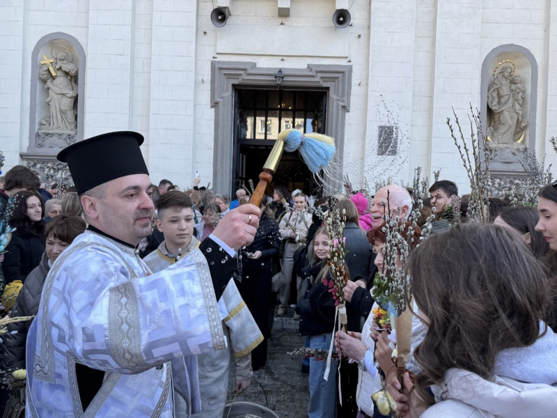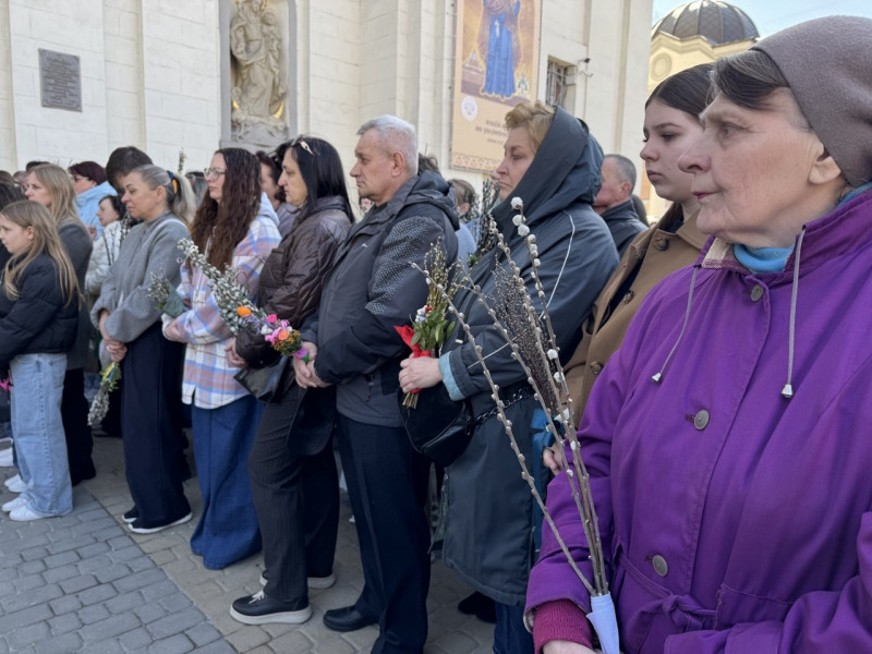 Освятили вербу також і віряни Української греко-католицької церкви. Після святкового богослужіння вони вийшли на подвір’я Архикатедрального собору Непорочного Зачаття Пресвятої Богородиці.