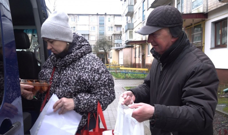 Заступниця директора центру Леся Фелик говорить, що пакунки розносять також 15 працівників територіального центру соціального обслуговування населення.