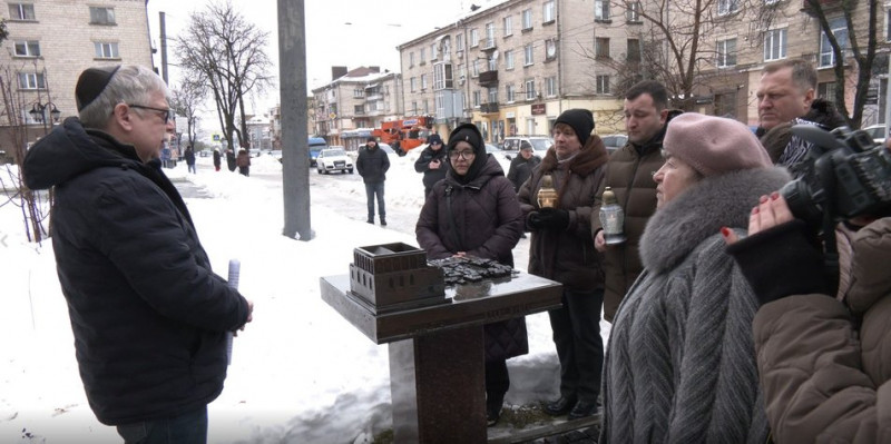 Розпочали захід з поминальної молитви спершу на івриті, потім українською мовою. Після цього присутні запалили лампадки, які поклали до меморіальної дошки.