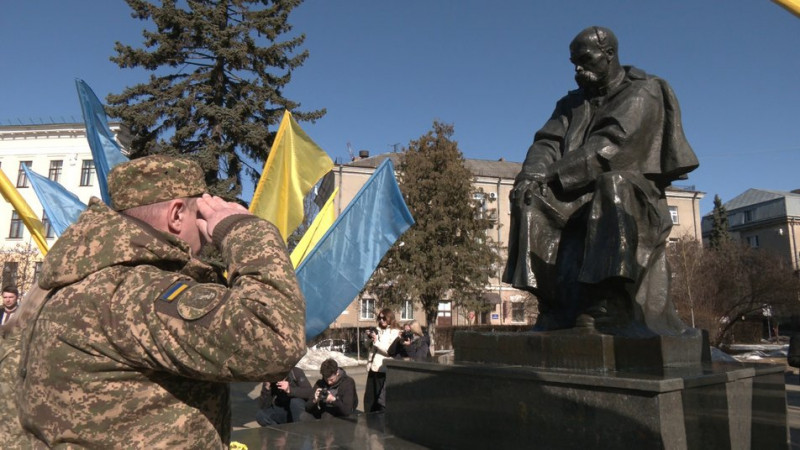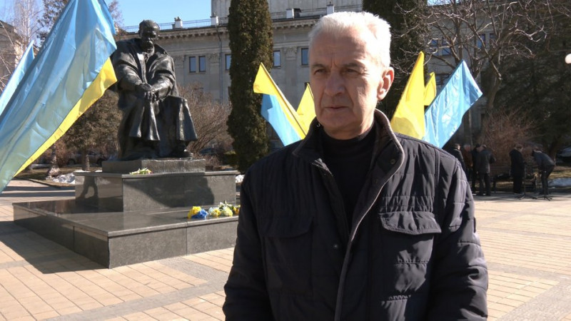 Тернополянин Володимир Грицай розповів, що кожного року приходить вшанувати пам’ять Шевченка. Чоловік сказав, що вірші поета знає з дитинства: