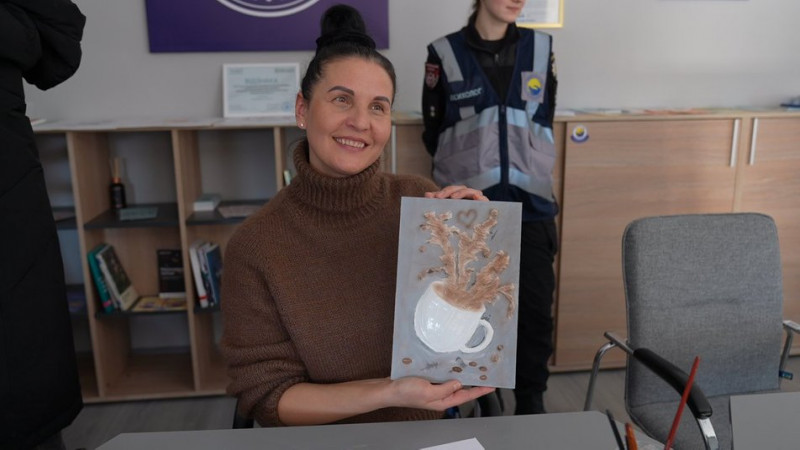 Майстер-клас з виготовлення барельєф-картин. Суспільне ВінницяКоли ми так працюємо кожен вносить свої відчуття. Це допомагає їм відчувати себе собою. Шаблони — це сумно. По шаблону людина зробила і воно не її. А коли свою улюблену чашечку з візеруночком — своє, тепле, домашнє і дуже важливе. Особистість кожної людини має проявлятися, і я їм у цьому допомагаю".