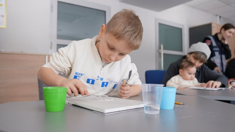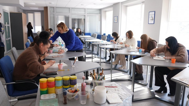 Серед учасниць майстер-класу — Вікторія Штудько, яка прийшла разом із донькою Златою. Каже, що заради чоловіка, який зараз на Краматорському напрямку, довелося пересилити втому і тривогу.