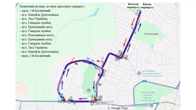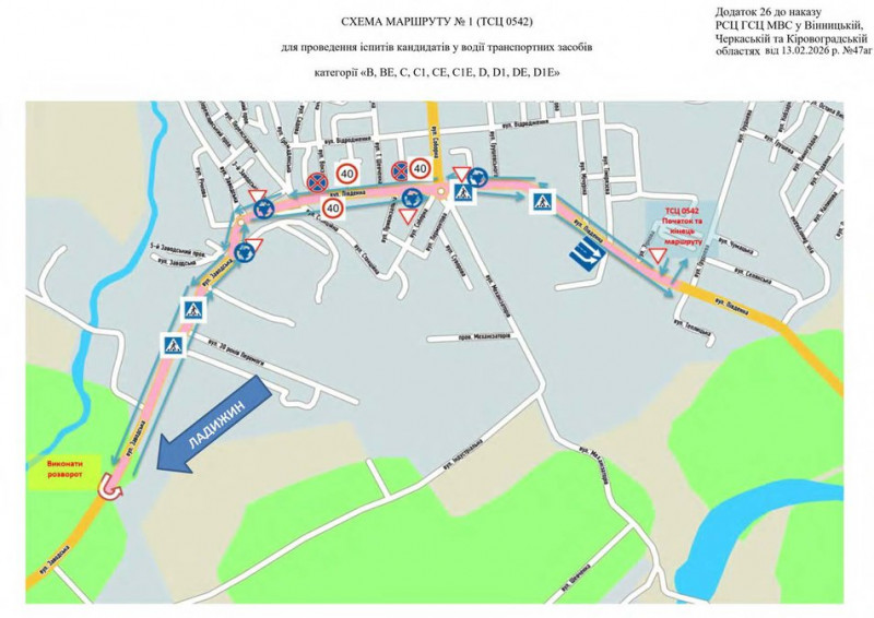 Схема маршруту практичного іспиту із водіння у Вінниці. Сервісний центр МВС