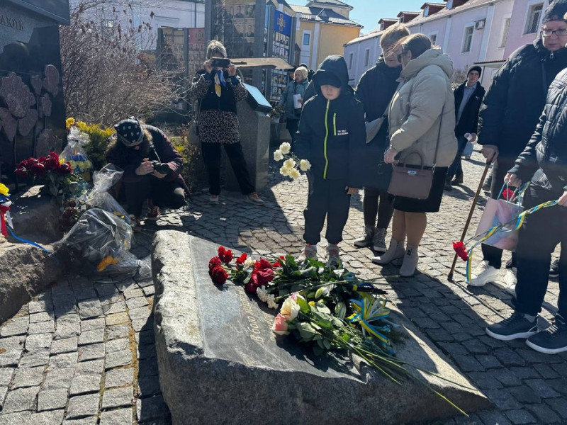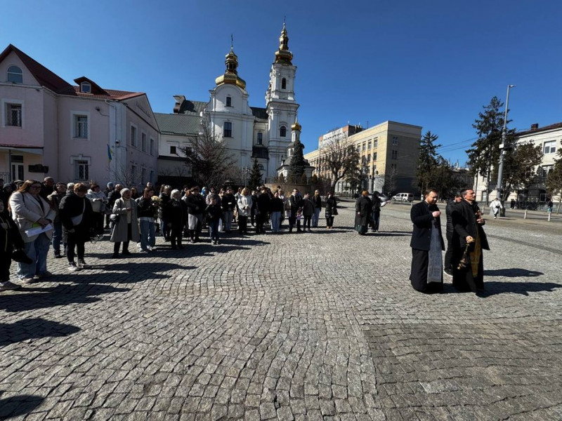 Спільна молитва біля памʼятних знаків полеглим захисникам на площі Шевченка у Вінниці. Суспільне Вінниця