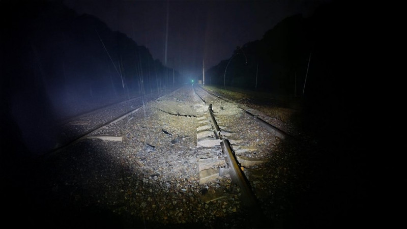 Пошкоджені колії внаслідок російської атаки. Олександр Перцовський
