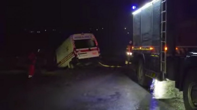 Карета швидкої, яка потрапила в ДТП. Скріншот з відео Володимира Єленєва