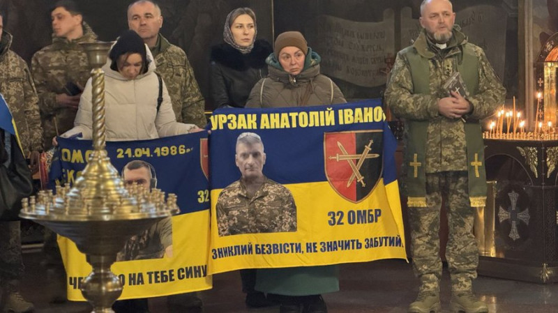 Більше року немає жодної інформації і про чоловіка Ольги, яка цього дня також прийшла до Михайлівського золотоверхого собору помолитися за військових. Її чоловік служив у 32 окремій механізованій бригаді і вважається зниклим безвісти.