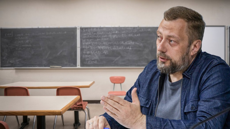 В’ячеслав Чаус на фоні шкільного класу. Суспільне Чернігів / Getty Images