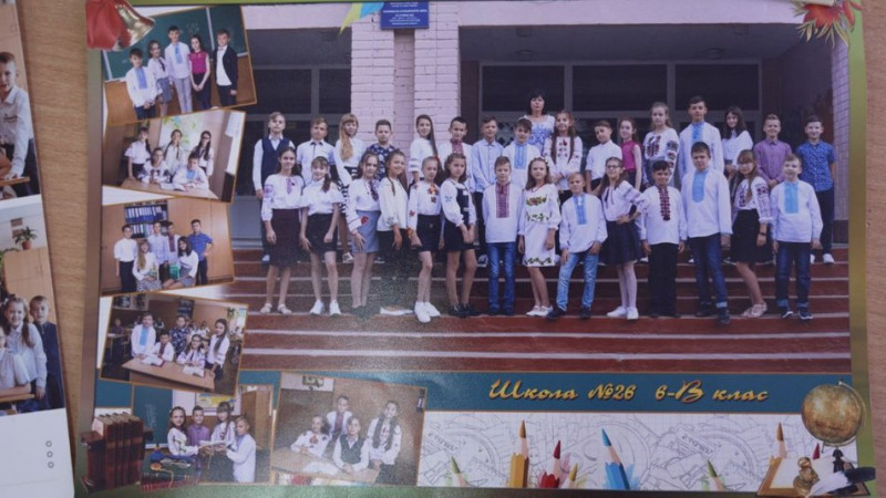 Класна керівниця хлопців Неля Романюк має фото їхнього класу. Жінка розповідає, що у школі є традиція — щороку робити фотосесію на шкільний літопис.