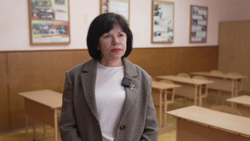 Неля Романюк показує фото класу. Суспільне Тернопіль