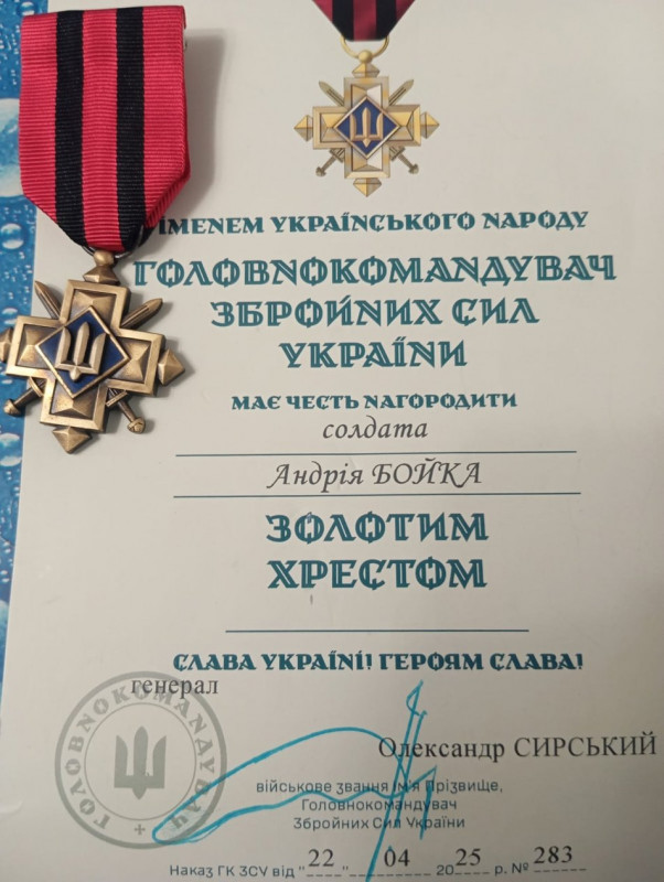 Житель села Стегниківці, що в Байковецькій громаді на Тернопільщині, Андрій Бойко отримав нагороду Головнокомандувача Збройних сил України "Золотий хрест".