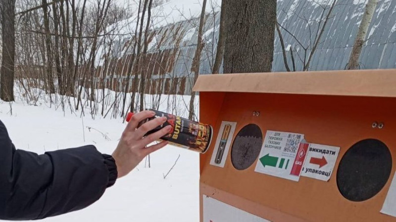 Контейнер для використаних туристичних газових балончиків. КМВА/Telegram