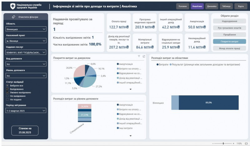 Покриття витрат у Подільському регіональному центрі онкології, дані за 1 та 2 квартали 2025 року. НСЗУ