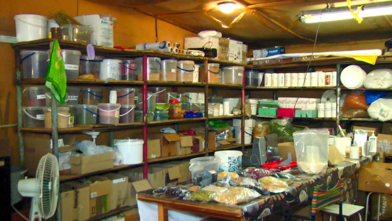 У січні волонтерки осередку працювали на кухні у будинку Лариси. У тісному приміщенні, розповідає жінка, варили овочі і м’ясою Там же завантажували сушарки й фасували. З початком теплої пори року облаштували кухню у гаражі. Тут є можливість розставити посуд із сушеними заготівками.