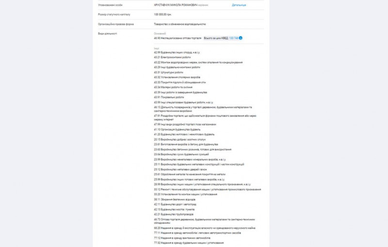 Види діяльності ТОВ «Аріс-ком». youcontrol
