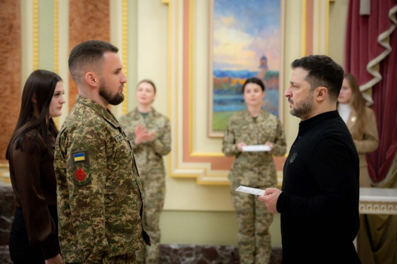Президент України Володимир Зеленський вручив сертифікат на отримання квартири Героєві України, головному сержанту бригади "Червона Калина" Національної гвардії України Андрію Орлівському, який родом з Вінниччини.