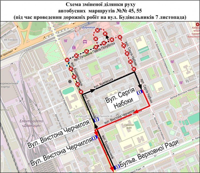 Автобуси № 45, 55 рухатимуться за такою схемою: