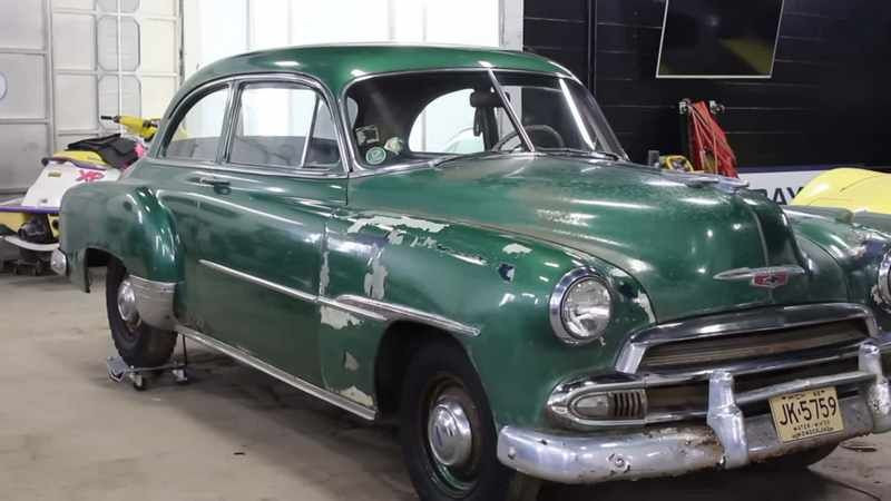 На кадрах сумна картина: дводверний седан Chevrolet 1952 року випуску вкритий товстим шаром бруду, сліди аварії свідчать про бурхливе минуле.
