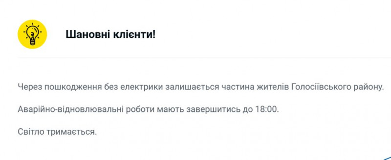 Скріншот з повідомлення. ДТЕК Київські електромережі