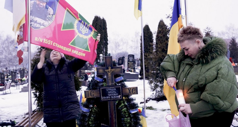 Мати та сестра військового Василя Сімушина на його могилі. Суспільне Чернівці