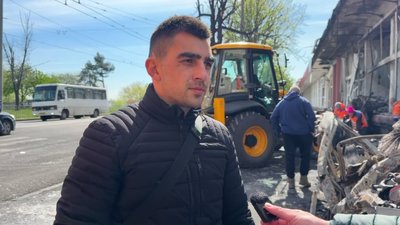 "Я дізнався зранку, коли вийшов, щоб їхати на роботу. З під'їзду вийшов — дивлюся: машина. Я зрозумів, що моя машина по дисках. І потім вже ходив, оглядав, знайшов ляду. Шахед поміж двох машин влучив. Це жах просто", — розказав він.